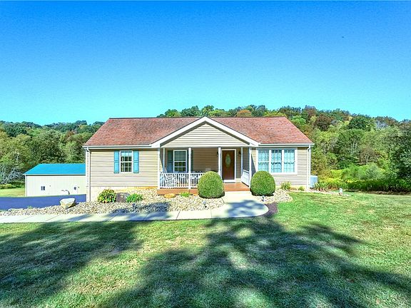 Need space? Find it here! Love cars. Perfect! Want horses? No problem! Chickens, goats, enough storage for it all! 32x46x14 pole building built in 2020 is heated w hot and cold water. 10K LB lift included in sale! 2 separate outbuildings will house whatever you desire. NO ZONING in Connoquenessing Twp! Do as you please. Don’t need the space? Rent it out & make extra cash! 3 bed 2.5 bath custom ranch with open floor plan and Brazilian cherry hardwood floors make this home a great place for gatherings & an even better place to cozy up and take in nature. Enjoy the views from the composite deck which includes retractable awning (electric). Cathedral ceilings in both open areas and primary. Generous sized primary with 2 walk-in closets and ensuite w jetted tub, walk-in shower, & double vanities. Finished walk out LL with ½ bath, loads of storage, and 9ft. ceilings. 2 lots included in sale. Minutes from downtown historic Harmony and Interstate 79 makes country living accessible to everyone!