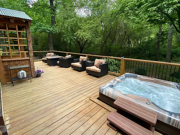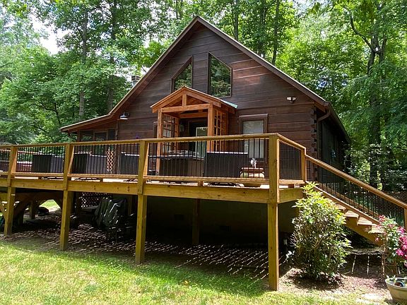 Beautifully maintained log cabin overlooking the Tickanetley/Cartecay River! Turnkey and fully furnished. Brand new aromatherapy Mr. Steam shower w/ 3 shower heads! Brand new matching Whirlpool appliances, granite countertops in kitchen, faucet and sink, lighting in hall and stairway. High-speed Fiber internet installed in April 2021. Large deck with hot tub, screened porch facing the river and firepit for that relaxing view. Stone walkway takes you through the level backyard and down by the shore for easy access to the river. New HVAC, 2 water heaters, septic pump and level switches in 2022. This is the river cabin you have been waiting for! Don't let this opportunity slip away! Ideal for your weekend getaway. Cabin has established rental history. Home comes fully furnished with washer/dryer, hot tub, some interior furniture, screened porch furniture, deck furniture, fire-pit chairs. Ellijay River Outfitters 4 miles down the road. Showings by APPOINTMENT ONLY as this cabin is currently be rented. DUE TO MULTIPLE OFFERS RECEIVED, WE ARE CALLING FOR HIGHEST AND BEST BY 2PM MONDAY FEB 27TH. PLEASE HAVE ALL DEADLINES REFLECT A MINIMUM DEADLINE OF TUESDAY FEB 28TH AT 11AM