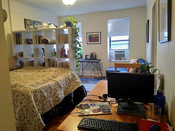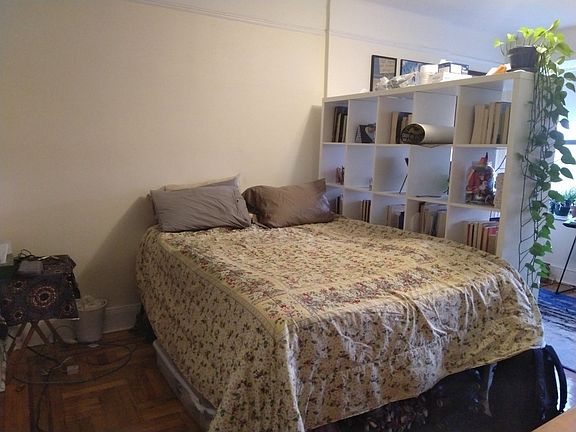 This spacious studio is located in Prospect Heights. It has an eat-in-kitchen off of the main room. There are two large closets and one full bath. Wood floors throughout. Only 1 block to B/Q train. Shopping and restaurants out your front door. Only 3 blocks to Prospect Park. Cat on approval, sorry no dogs.