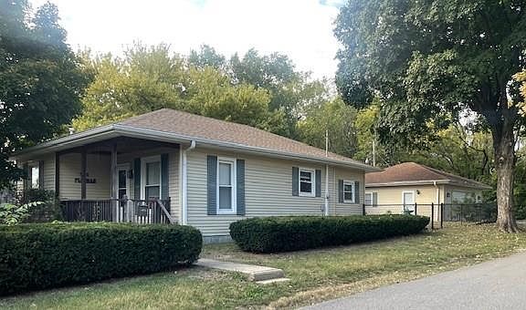 Move in condition home with vinyl siding and updated windows plus an oversized 2 car garage, large covered gazebo, & fenced backyard. Enter this home & find a room full of cabinets, pullouts, counter space, pantry, desk, file cabinet & hide away ironing board. Features: Eat in kitchen with appliances, main floor laundry room including washer & dryer, hardwood floors, built ins galore, plantation shutters, ceiling fans, no carpet, covered front porch. Impressive 2 car garage has heat, window unit, cabinets, work bench with electric outlets, vacuum system for woodworking, pegboard walls, & attic for storage. Home is well taken care of. Corner lot & low taxes.