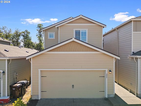 Welcome home to Molalla's Bear Creek neighborhood! This inviting home's open great room lets light stream in and keeps everyone connected on the main level. The spacious kitchen is a home cook's dream with a large pantry, abundant storage, plenty of counter space, energy-efficient appliances, and a gas range. Upstairs the master suite includes a large walk-in closet and an en suite bathroom for ultimate comfort. The 2nd and 3rd bedrooms are privately arranged alongside a convenient laundry room and a versatile alcove ideal for an office or hobby/play area. This green home features Blue Raven solar panels that virtually eliminate electric bills and a high-efficiency furnace. Enjoy year-round comfort with a premium air conditioning system and smart thermostat sensors on both levels for optimal temperature control. Outside, the fenced backyard with raised garden beds offers a sanctuary for pets, relaxation, and play, while bordering an HOA-maintained walking trail with the option to install a gate for direct access to nature. Bear Creek neighbors also enjoy a community playground and dog park. Built in 2019 by LGI Homes with the popular "Chinook" floorplan, this home is nearly new and includes upgrades like magnetic window coverings and benefits from amenities like the highly-regarded Molalla Communications gigabit internet service. The City of Molalla is also planning a new park just down the street, Chief Yelkus Park! Conveniently located near Molalla Elementary, Molalla River Middle School, Billy Sheets Field & BMX Track, Cascade Center shops, and Molalla River Brewing Company, this home combines modern comfort with vibrant community life!!