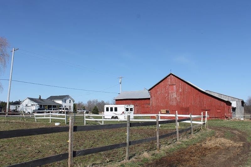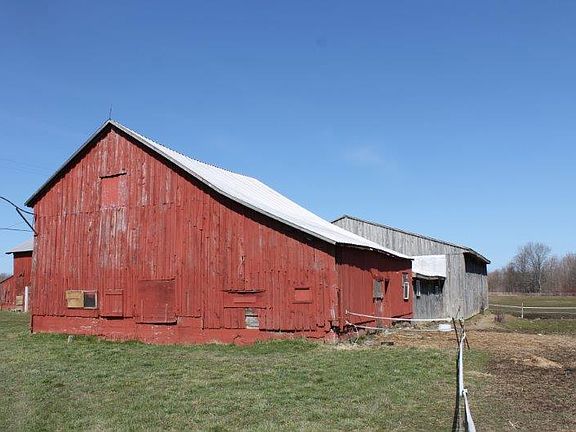Early 1900's farmhouse with approx. 1,576 square feet of living space including 4 bedrooms and 2 full baths, country kitchen, living room and storage room. Ideal for a family looking for acreage. Excellent for horses or other livestock. Property includes acreage on both sides of Fort Leazier Road with approximately 37 acres of tillable land and pasture, approximately 15 acres of woods and frontage along Sage Creek (tributary to Lake Ontario) where you have lake run trout, steelhead and salmon. The farmhouse and shed are on one side of the road, and large barns on the other side.