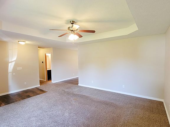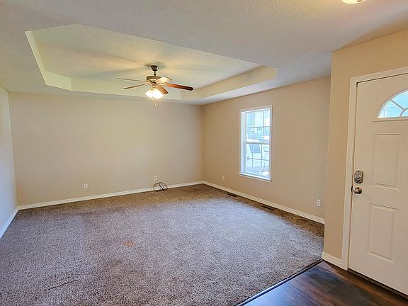321 Gator Lane, nestled in a cul-de-sac in Sparta, offers the charm of beautiful shade trees to be enjoyed throughout Missouri's four seasons. Built in 2008, this home boasts three bedrooms, two full baths, and a two-car garage, all meticulously maintained by the current owner. The backyard provides a private retreat with a 6-foot wooden privacy fence, a patio off the kitchen, and a large, flat side yard. Inside, you'll find a spacious kitchen with ample counter space, white appliances, and attractive flooring. The home features six-panel doors, and the paint and carpet are in neutral tones throughout. Additionally, there is an extra parking pad for convenience.