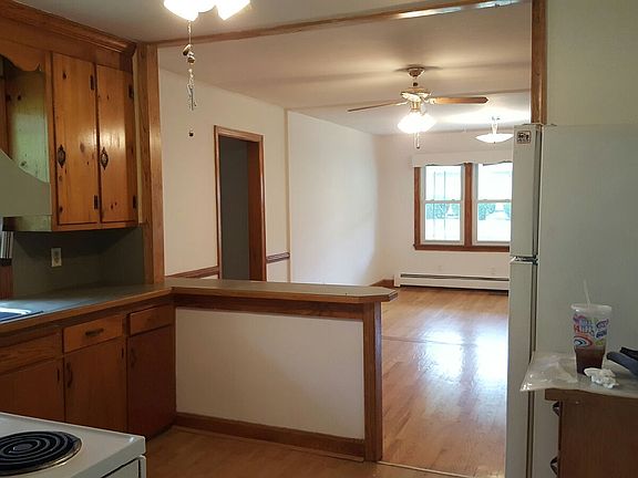 2.5 lots 2 car detached garage Finished hardwood flooring 1 full bath, one basement toilet Central AC, hot water heating Storage shed Full unfinished basement w/workbench Replacement windows