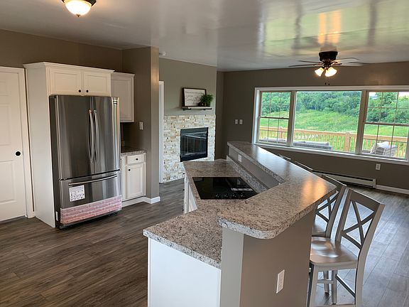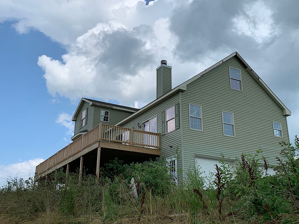 Move right into this wonderful custom Cape Cod home! Situated on 6 beautiful acres with far reaching views. Home was thoughtfully & meticulously updated. Features include 3 bedrooms, 2 baths, updated kitchen with white cabinetry, island, stainless steel appliances, open floor concept, master suite, stone fireplace, new energy efficient heating system, and all new flooring throughout. Additional living space with an unfinished upstairs and large basement for a family room. Two generous decks, perfect for barbecues and watching the sunset. A must see!!