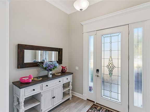 Tranquil lake viewsSpacious primary suiteCrown mouldingSerene water viewsWalk-in closetStainless appliancesTiled walk-in shower