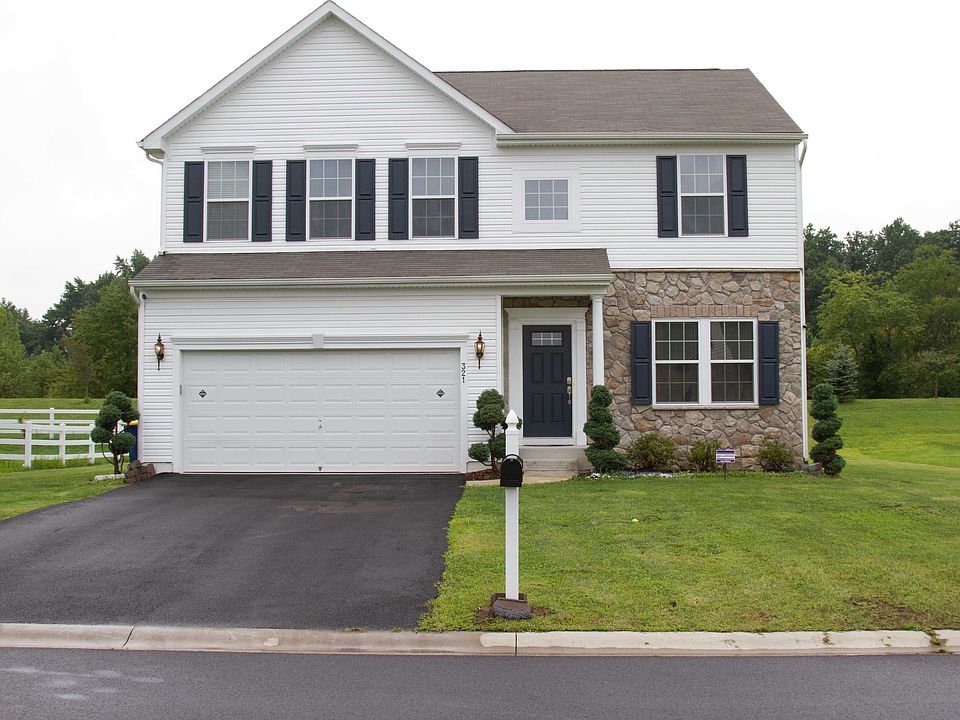 R-7841 This gorgeous & cozy 4 bedroom with 2 full/2 half baths is located in the newer Hazel farms development & backs up to trees. On the main floor you will find a gas FP in the FR, hardwood floors in foyer, FLR, kitchen & dining area, beautiful cherry cabinets, large kitchen island w/breakfast bar, black appliances, & a half bath. Off of the kitchen you will step out the sliding glass doors to enjoy the outdoors with a custom-built semi-enclosed paver's stone patio. Upstairs you will find 4 spacious bedrooms w/ample storage, coveted upstairs laundry room & full hall bath. The master suite is complete with a soaking tub & large walk-in closet. It also features full finished basement with large rec room area and half bath. Home has attached 2 car garage w/drywall. This is a great location w/convenient access to Rt.13 and Rt. 1. Neighborhood amenities include a clubhouse, pool, tennis court, basketball court, a tot lot, & lots of open space. This home shows like a model home and you don't want to miss it!