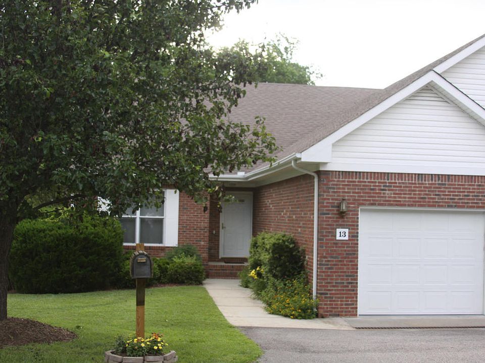 Immaculate 2 bedroom 2 bath condo with a vaulted ceiling, fireplace with gas logs, stainless steel appliances, tile shower, tile bath floors, hardwood floors, nice deck and a garage. This home is an end unit allowing a large yard with irrigation. This condo is one level with a brick exterior, it has been professionally painted even the garage. The garage has a washer and dryer connection allowing the spacious laundry to be used for a home office. The master has three closets for wonderful storage. Carefree condo living at its best close to shopping, entertainment and medical facilities.