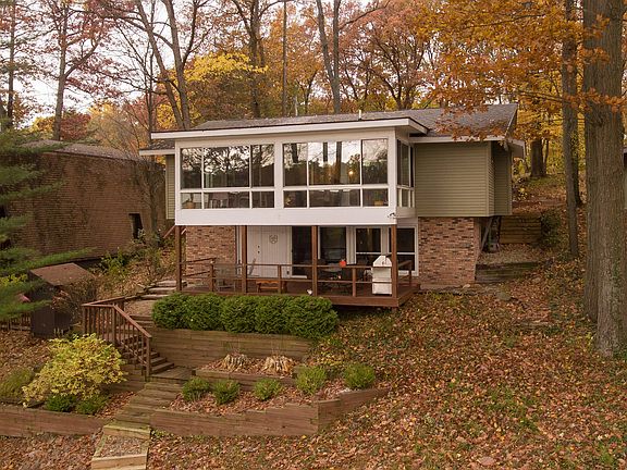 Beautiful, updated and move-in ready walk-out ranch on Lake Doster! This lake home offers 2,500 fin sq ft, 4 bedrooms and 2 full baths and one of the finest elevated views on this private, All Sports lake. Sellers have invested heavily since 2016 and have re-landscaped the entire lot; creating awesome space in the front yard and the lake yard. They have removed walls on the main floor that have opened it up, installed a new Mendota fireplace and put in a new kitchen and new high end flooring. It's a stunning main floor and all of the renovations highlight the open floor plan and breathtaking views! Incredible 3-season room! Lower level includes 2 large BRs, an updated new full bath w great new ceramic surround shower, and big rec room that walks out to a covered patio. New high eff furnace. The 76 ft of frontage are protected by a new steel seawall. Great fishing off the new dock! Lake Doster is well-positioned for Grand Rapids/Kalamazoo. Only 2.5 hours from Chicago!