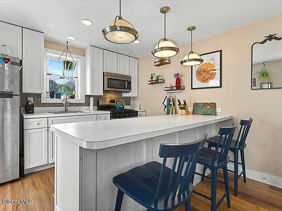 Come see this incredible buy in Burnt Hills! This charming 3-bed, 2-bath home sits on a quarter-acre lot in the Burnt Hills school district, just a short walk to schools, coffee shop, and so much more. Features include a beautifully updated kitchen, baths and flooring with hints of original charm throughout! With a first-floor bedroom, a dry basement, a new furnace and central air, tankless hot water, public and a brand-new driveway you'll be able to enjoy everything this home offers. Relax on the covered front porch or around the fire in your spacious yard filled with fruit trees. Enjoy additional storage in your detached garage. The ''kids'' shed is included in the sale. Come check this one out!