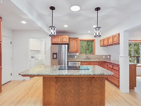 Updated Home Overlooking the White Salmon River – 2 Acres with Trail Access.Just 10 minutes from downtown White Salmon, this refreshed 1991-built home offers a flexible floor plan, scenic views, and easy access to the White Salmon RiverThe main floor features vaulted ceilings in the open living, dining, and kitchen areas, with a breakfast nook and a sliding door leading to a covered deck that overlooks the private backyard and river below. There's also a small bonus nook—ideal for a home office or play space.Recent updates in 2024 include new interior and exterior paint, updated flooring, remodeled bathrooms, and new fixtures throughout. The main level includes a primary suite, guest bedroom, and full guest bath.The daylight basement adds two large bedrooms, another full bath, a family room, and a carpeted, lighted under-stair space perfect for play or extra storage. A separate mechanical/storage room adds additional functionality.New HVAC system installed in 2024. All situated on 2 acres with great privacy, natural beauty, and easy access to both town and the river.