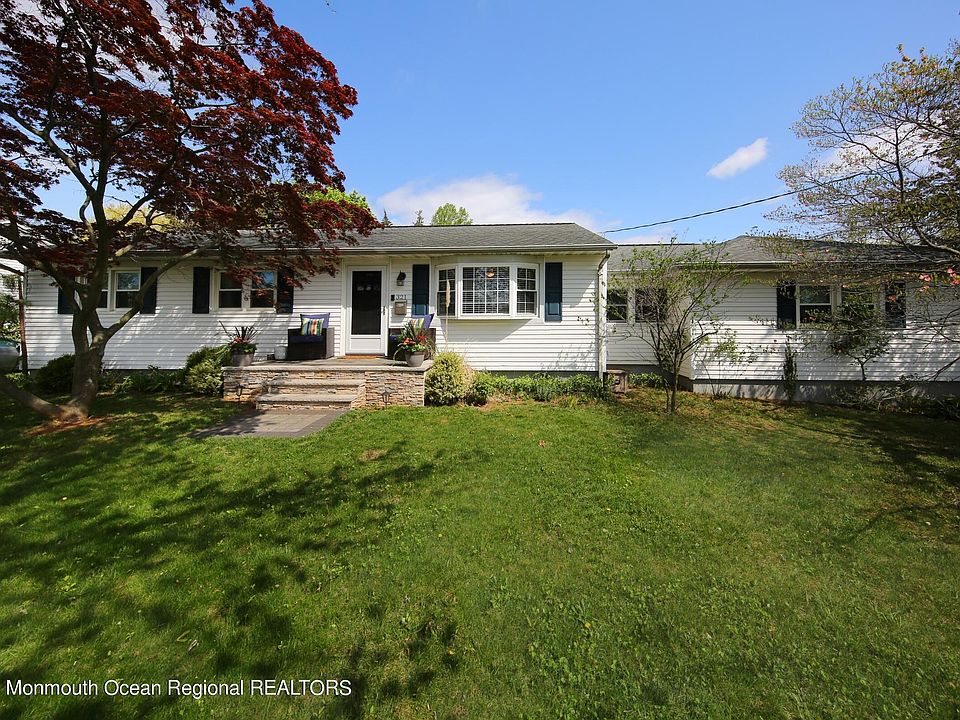 Pride in ownership is evident in this meticulously maintained 3 bedroom ranch. This home features spacious kitchen and dining area. Large living room with hardwood floors and bay window. 3 nice bedrooms all with hardwood flooring, lots of closet space, new front door and stairs. Custom woodwork throughout the home. Bonus room off kitchen and 2 car attached garage with entrance on Bayview. Full newly finished basement with beautifully finished family room, exercise area, office with barn doors and 1/2 bath and laundry. All bathrooms redone. Furnace, Central air, upgraded electric panel, front and garage doors done during last 2 years! Great corner property. Excellent schools, Convenient highway and commuting options, great shopping, and a short drive to beautiful beaches!!! Zip 07718