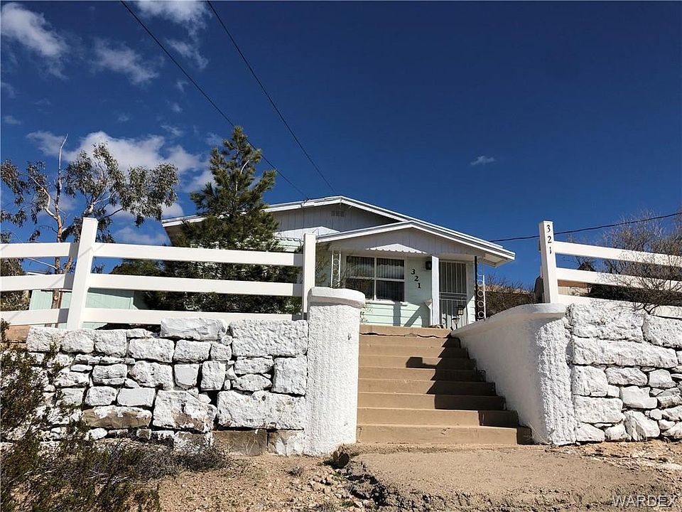 Darling historic home in charming downtown Kingman. Has beautiful mountain, panoramic and city views! New windows 2011, Kitchen was updated in 2012, Bathroom updated in 2017. Large new storage shed added in 2014. Roof replaced in 2007. Water heater replaced in 2007. New master panel one furnace in 2008. This home is adorable, spacious kitchen with plenty of cabinet and counter space, newer appliances. Carpet is in poor condition but was not replaced, plans were to go back to the hardwood floors. It has a tub with shower, single vanity with quaint builtins. This would make a wonderful personal home or a very cute #AIRBNB The lot goes from Maple to Chestnut.