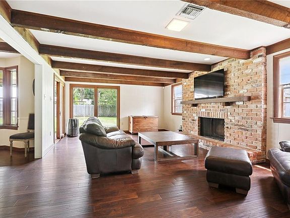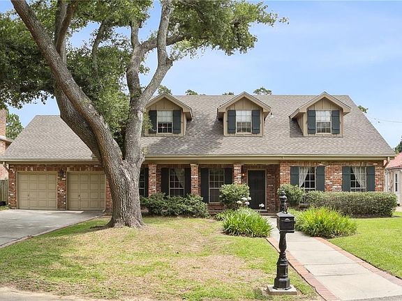 A taste of the French Countryside right in River Ridge! This grand colonial dormer home sits on a large lot with massive front and back yards, a garage, and a deep driveway offering ample parking options. A brand new, certified fortified roof, new siding, and fresh exterior paint, not only gives this home curb appeal, but it makes it more resilient to the weather that living in South Louisiana brings and reduces your insurance rates. Through the front door you are greeted by a beautiful staircase and hallway with a powder room for guests while you entertain. To the left and right of the front entryway are the expansive dining and formal living rooms. Through the hallway, the home opens up to a large kitchen and living room space, with direct access to the back yard. This open flow allows great sightlines, enhancing the quality time spent with family and friends. The well appointed kitchen offers a large stainless fridge, double ovens, a separate cooktop, and an extended peninsula for displaying your culinary creations. The kitchen will likely make this home hot spot for holiday gatherings! Just off the kitchen is the door to the two car garage and attached storage area, making it easy for you to bring your groceries directly to the kitchen. Through the sliding glass door in the living room, sits a covered back porch overlooking an enormous backyard with plenty of room to install a pool and still have tons of additional space. Back inside and up the stairs to the right, awaits a large primary bedroom with an ensuite bath featuring a sizable walk in closet, walk in shower, and double vanity providing an abundance of additional space! Down the hall is a large guest bathroom with great storage, three large bedrooms, and a rumpus room! This gorgeous home is located in a premier area of River Ridge. This is a rare opportunity to own a substantial, centrally located home with a BRAND NEW roof, and too many amenities to name. Ready? 3..2..1..Go see Midway today!