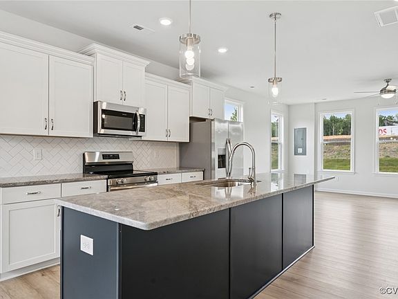 MOVE IN BEFORE SCHOOL STARTS! "Welcome to McCaulay Park in King William, VA, a vibrant community offering spacious two-story townhomes. Conveniently located just off Route 360, McCaulay Park provides easy access to Mechanicsville, where you'll find a variety of shops, restaurants, and entertainment options just 20 miles away. This stylish two-level Daphne townhome offers 3 bedrooms, 2.5 baths, and luxury vinyl flooring throughout the main level. The open-concept great room flows effortlessly into a spacious kitchen featuring granite countertops, a stylish backsplash, ample counter space, and an eat-in area. All appliances are included—refrigerator, washer, and dryer for your convenience. On the second floor, the primary bedroom impresses with a walk-in closet and an ensuite bath complete with dual vanities, a tile shower, ceramic tile flooring, and quartz countertops. Two additional bedrooms, a second full bath, and a laundry room complete the upper level, providing both comfort and functionality.