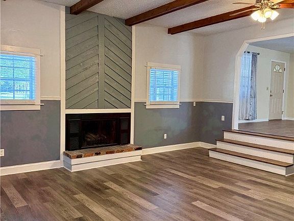 This is a 3 bedroom, 2 bath, SOLID BRICK HOME, that sits on a BEAUTIFUL one ACRE lot! The large den/ family room with a FIREPLACE could be a fourth or primary bedroom. The ROOF and HVAC, Interior paint, and LVP flooring was all RECENTLY replaced! The huge back yard includes 2 small sheds for extra storage and an open patio perfect for grilling. On the front of the house, you have 2 different large porches, one enclosed and one open but yet still covered. There's plenty of parking space and some beautiful trees which make this property even more desirable. The location is great!! You have that quiet and peaceful country setting, but yet so very close to all amenties and the heart of Kingsland. NO HOA and NO FLOOD ZONE. Call to set up your showing today~