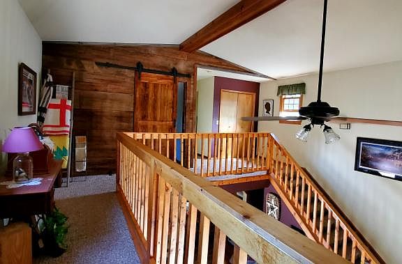 This 3 bedroom, 2 bath house has a lot of character. When you enter the house from the side porch, you will walk into the living room. The accent wall has reclaimed barn wood that adds warmth and charm. The living room has a high ceiling with a loft above that will allow for a small reading area, and the shelf on the wall facing to the back yard, lends to itself to all kinds of decorating possibilities.You can exit into the back yard from the living room onto a large deck area where there is plenty of room to entertain for barbecues. The back yard has a charming shed, some mature trees and open areas for a swing set, volley ball net, ect. Once you walk back into the living room you will enter into an open kitchen. As you walk through up to the front of the house, there is an area that will make a nice open office area, or if you have little children, they can hang out there while mom is in the kitchen able to keep an eye on the kids. Off of the front room is a master bedroom. You could keep it as a master bedroom or if you are a young couple, and starting your family, baby could be on one side of the room while mom and dad are on the other side. Or if you have an elderly family member living with you, one side could be the bedroom and the other side could be used as a small living room. They would be able to have their privacy. There is a full bathroom on the main floor. And hard wood floors through out the kitchen, front room and master bedroom. The living room, stairway up to the 2nd level, both bedrooms are carpeted. The other full bathroom is on the 2nd level as well. In the basement, half of the basement is partially finished. A great place for the kiddos to hang out. The garage sits a ways back from the street, so if the kids are playing in the drive way or playing basketball, they won't be close to the street. This house has a lot of charm, character and feels warm. Can you see yourself living here? Seller is a licensed real estate agent.