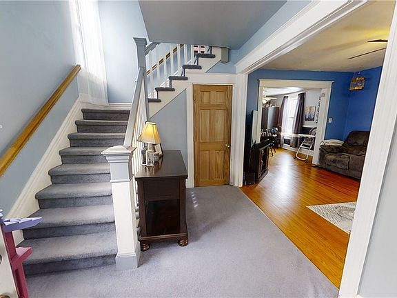 Great opportunity to own a home on a massive partially fenced yard. Many upgrades have been done including newer windows, expanded 2 stall garage to accommodate 2 cars. Concrete poured patio and sidewalk. Above ground pool. New laminate kitchen floor, new refrigerator with water and ice maker. Finished Hardwood floors. Remodeled and heated 4 seasons room (porch). New gutters added with downspouts. Rain barrel off garage gutter. Some updated painting. Full waterproofing system in basement.. Bathroom/laundry on the main floor plus one on the 2nd floor.