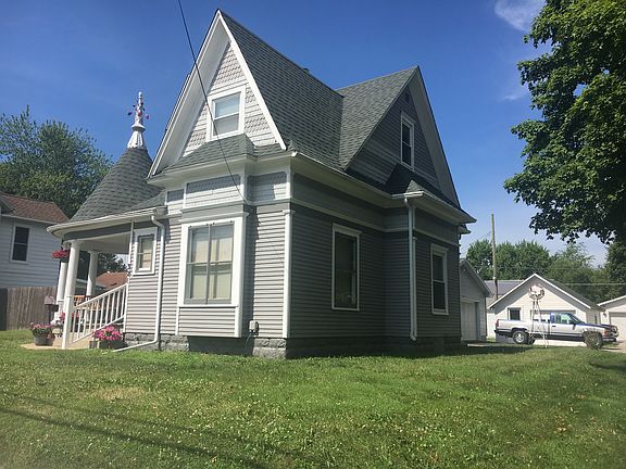 Come and see all the possibilities in this charming home conveniently located in the heart of Churubusco. You will love the all natural woodwork, beautiful hardwood floors, crown molding, base molding and the unique rounded front porch. You will also enjoy the oversized 2 car attached garage and 1.5 detached garage! That is right! 2 garages! Roof is only 4 years new, boiler 3 years new and 50-gallon water heater 2 years new. Electric has been updated to 200 AMP service. Brand new kitchen and bathrooms, custom cabinets and stainless steel appliances. No rent to own and no solicitation calls.