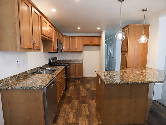 55 and older modular built in 2021. Two bedrooms and two baths with an over sized one car garage. Great retirement home close to downtown, the hospital and grocery store. Covenants and HOA fees apply. All measurements are approximate.