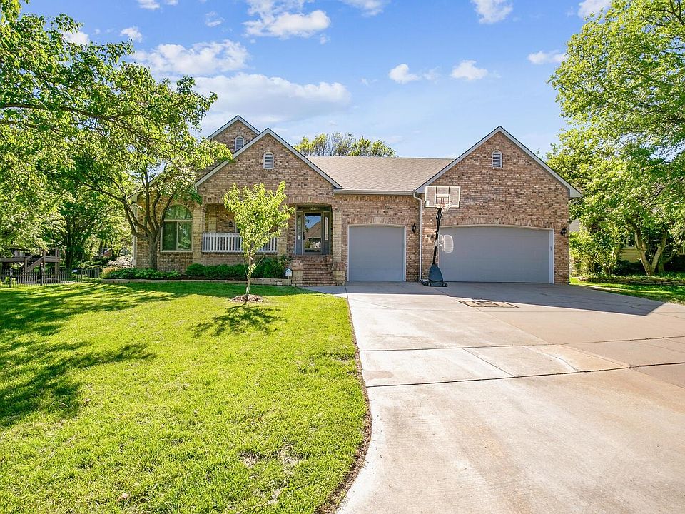 New Lower price for the future owner to do some updates of their choice Beautiful 5 Bedroom home in the desirable Belle Terre neighborhood! Main floor has three bedrooms, hickory hardwood floors, a beautiful stone fireplace and a large stone island perfect for a Chef! The kitchen has it all including stand alone ice maker, built in trash, and large built in spice racks! There is a generous master suite and bath featuring separate tub and steam shower plus double sinks. There is an office and full bathroom on the main level, a jack and Jill style bath in between the two bedrooms. The basement has an impressive huge 27 x 30 rec room and space for a pool table. There is a large wet bar, walk out access to the backyard, as well as 2 additional bedrooms and full bathroom. Siding, Anderson 100 Series brand new windows, dual ovens were new in 2019, AC unit replaced to heat pump in 2019, Epson home cinema setup stays for the future owners. Wichita property taxes with Andover Schools get the best of both, Don't miss it!