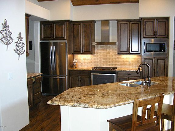 This house has one of the most desirable floor plans in The Retreat at Bison Crossing. It has a wonderful view of the 17th fairway of Bison Golf Course. Soaring 16 footceilings! Three bedroooms plus a den, 2 full bathrooms, all granite kitchen AND bathrooms! A gas fireplace sets a relaxing and romantic tone on cool nights.Kitchen has all stainless appliances, tons of cabinets, large pantry, and oversized island/breakfast bar. Split bedroom plan. Barn door separates the master bedroomfrom the master bath, which has a jetted tub, separate shower enclosure, and dual sinks. Designer fans throughout. The backyard boasts a 613-square foot deck that extends almost the full length of the house, 498-square-feet of which is covered with a finished cathedral ceiling.