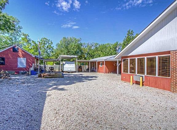 Lots of possibilities - Main house has great man cave with stone floors, newer windows, pedestal sink in bath, inside utility, open floor plan, carport. Additional 1 bedroom, 1 bath home along with 2 storage buildings.
