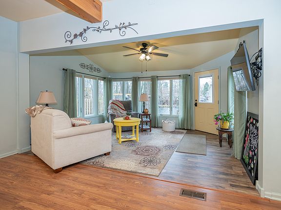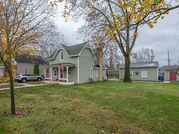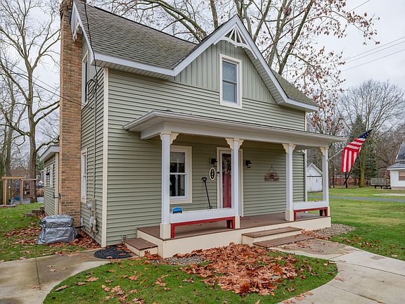 Nestled on the scenic Kalamazoo River, this beautifully restored farmhouse, built in 1887, offers the perfect blend of historic character and modern amenities. Completely renovated in 2021, this 2-bedroom, 2-full-bath home features: 122 feet of private water frontage on the Kalamazoo River. Located within walking distance to downtown Plainwell, Sherwood Park, and the local favorites - Plainwell Ice Cream and Deans Ice Cream shop. New furnace, AC, water heater and softener in 2020. New gas fireplace insert installed in 2021 for cozy evenings. Renovated kitchen with new cabinetry, countertops, and appliances. Professionally renovated exterior, including new roofing, siding, windows, and a composite porch.A spacious 26x26 insulated workshop is easily adaptable to a 2-car garage if desired.