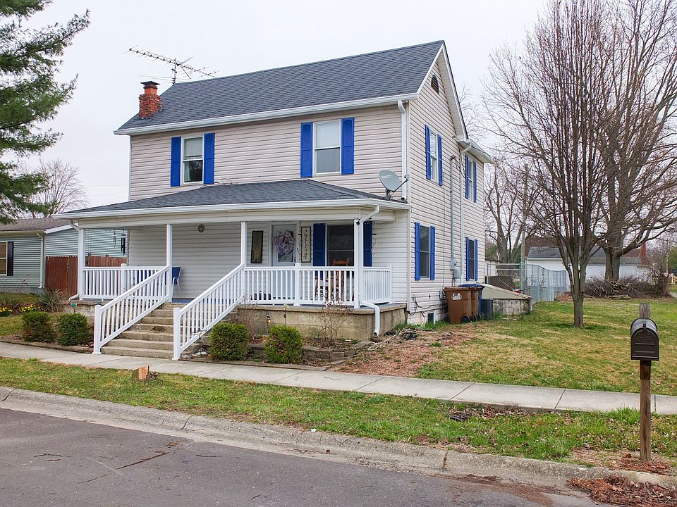 This charming two-story home located in Ladoga offers a fantastic opportunity to embrace comfortable living. Situated on a spacious mature lot, that includes a fenced in backyard and a large wood deck for relaxing. The home also boasts a welcoming covered front porch. Inside, discover a cozy family room with a fireplace, formal dining room, and a large open kitchen illuminated by skylights. Additional highlights include a spacious sunroom/family room and laundry room. Upgrades in the living room, dinning room, kitchen and sunroom all include brand new flooring and paint. All three bedrooms are located on the upper level. This home combines timeless charm with modern comforts.