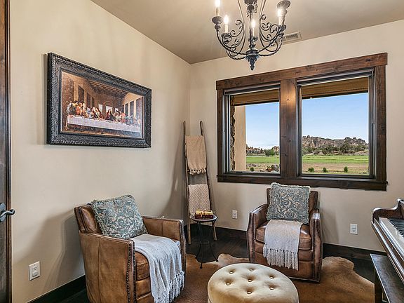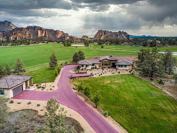 Located at the base of the renowned Smith Rock in the community of Ranch at the Canyons where luxury ranch life embraces tranquility & solitude. The Peninsula welcomes you! Sited on 4.5 acres, this exquisite luxury home features single floor living with 2 en-suites and a Master bedroom with stunning bathroom including soaking tub. Home also features a den/study also capturing breathtaking views of Smith Rock. 3 car finished garage, additional detached 2 car garage with office or guest room and separate bathroom. Become immersed in the peacefulness of this Tuscan ranch community.