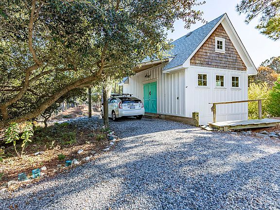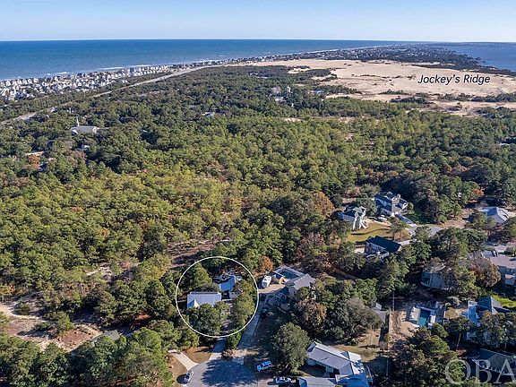 Exceptionally well built and appointed Nags head style custom home, located on a 1/2 acre elevated lot that backs up to over 59 acres of protected land at Jockey's Ridge state park. Walk out of your backyard and onto a trail head that meanders through maritime forest and leads to the famous Jockey's Ridge sand dunes. The property also includes a 16'x28' heated workshop (would make a great art or yoga studio) and 8'x16' greenhouse. You can enter the home on the ground level or you can use the formal entrance with a custom designed wide staircase that leads to the quintessential Nags Head style covered porch. The dual swing mahogany front door welcomes you into the home. The custom tile work floor inset features sharks teeth, sea glass and other treasures that were found on our Outer Banks beaches! The floors are skip planed New England pine, finished with Rubio Monocoat, an environmentally friendly coating that gives off no VCs. The home was thoughtfully designed to have a naturally bright open living space, with abundant Pella windows to maximize the southern exposure, while smaller windows on the northeast facing walls keep the home protected. 9' ceilings throughout, with shiplap accent walls and electric fireplace. The owners love the functional kitchen with GE profile appliances including dual fuel range, high grade solid cabinetry with slide out shelving, leathered granite countertops and large kitchen island with a power popup. The kitchen opens up to the living and dining spaces, with access onto the large covered porch that faces the park land. Walk down the hall to the primary bedroom with walk-in closet and en-suite bathroom featuring LVT flooring and tile shower. Each doorway on this side of the home features a custom transom with more local treasures, weaving the beauty of the Outer Banks into the home while adding to the natural brightness of the layout. There is a half-bath on this level, and abundant closets and storage. Walk up the steps to find two additional bedrooms and large full bathroom. There is conditioned walk-in attic-space also, so no steps or ladders needed to access your holiday decorations! The stairs from the main level of the home descend into the base level of the home that contains an in-law suite with living space, bedroom, bathroom, almost-full kitchen and separate entrance. Additionally, there is a mud room with laundry and half bathroom. The space is well designed to be used together with the main home, or to close off the efficiency space completely as it's own apartment, while the main home still has use of the laundry and mud room. There is an exterior door in the mud room that opens to the large covered car port area, as well as an exterior door in the main living space section. There is a large covered outdoor shower and changing area with Trex flooring. No expense was spared when it comes to protecting, heating, cooling and powering the home, and it's as flood and storm proof as it can get. Stainless steel nails and screws were used on the exterior, a galvelume metal roof covers the home and the accessory structure, and includes an 11kW, 36-panel solar system that generates 100% of the power used and enough spare capacity to charge an EV. There is a Rheem 80-gallon hybrid heat pump water heater and 3-zone high efficiency Carrier HVAC system with NEST thermostats. There are also NEST fire detectors with motion sensor soft night lighting. The whole home is wired with cat5 and coax with centralized patch panel. Naturally landscaped exterior with wax myrtle, pine, holly and live oaks, with sod terrace. The owners added tensioned sun shades that cover 4 parking spaces. If you're a gardener, you'll love the greenhouse space behind the accessory structure and the planter-box wall that lines the driveway. Over 500 sqft of covered outside storage space connected to the home. Too many details to list, I think you get the point that this home is a unique opportunity in a fantastic location.