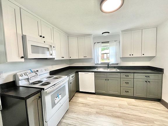 Nice 2 bedroom with so many updates. New kitchen Cabinets, flooring, disposal and counter. All new appliances to include microwave hood, refrigerator, dishwasher, stove and freezer. Roof is 3 years old apo. New carpets and fresh paint. Porch with 1 car garage and plenty of parking. Whole house wood stove in basement with permit. Bathroom has been updated as well. Replacement windows, doors and vinyl siding. New blinds and curtains included. This could be the one! Nice woodwork with arched doorways and wainscoting. New ADT alarm system and camera system included. Fenced yard and solar lighting. Hot water tank replaces 3 years ago apo.