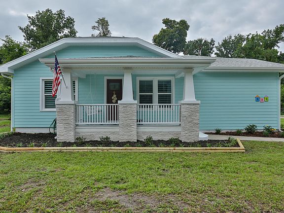 Rare find! 1928 Craftsman style home completely renovated & situated on three lots w/a small pond & deck! Salt pool and spa installed in 2022 with beautiful brick pavers under a massive screen room. Detached pool house with brand new copper roof opens to pool area. New roof, plumbing, electric, whole house water purification system, cement board siding & new gutters/soffits, windows, doors & A/C unit w/handler all permitted & passed inspection. High end primary bath, new kitchen w/soft touch cabinets & quartz countertops. New plantation blinds throughout. New well pump, sod and sprinkler system. All new comfort height toilets & new vanities. All new appliances throughout. Plenty of room for parking your RV and boat. This home is a must see!
