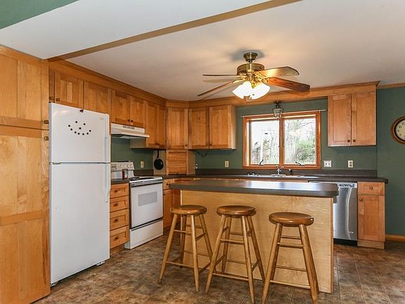 Well located bright and sunny, above grade raised ranch! Newly refinished gleaming hardwood floors in all 3 bedrooms and living room. Fireplace and wall A/C in living room. Kitchen has upgraded cabinets, appliances, center island with oversized counter top for stools, and is open to spacious dining room or family room! Roof 2015, APO. Slider opens to wood deck in back yard. First floor laundry. Property has been cleaned professionally, is vacant, and easy to show.