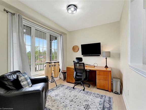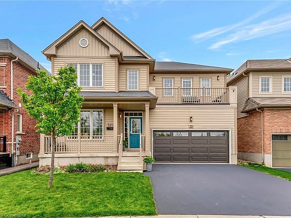 Located on a quiet dead-end street, this stunning 2500 sq. ft West Brant home offers space, style, and function. Enjoy a bright and spacious, open concept main level with large foyer, 9 ft. ceilings, separate dining and family room, large eat in kitchen with stainless appliances and convenient mudroom from garage. The separate office is ideal and offers privacy. The second level features 4 large bedrooms, a primary suite with double walk in closets, 5 pc. ensuite, upper laundry and sitting area to upper balcony. The fully fenced backyard is landscaped with a tranquil pond. Steps to the Rail Trail, schools, shops and park. The unfinished basement is a blank canvas—ready for your personal touch. This home is perfect for a growing family and entertaining in style. Nothing to do but move in and enjoy. NOTE: The LE & N Rail Trail sits just across the road—protected green space that can’t be developed, offering lasting views and privacy.