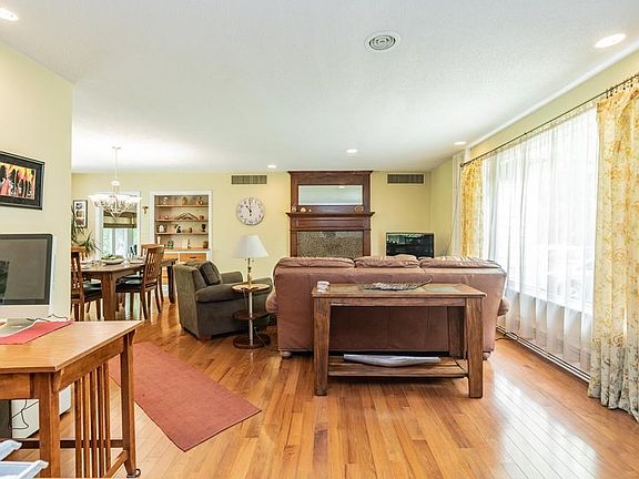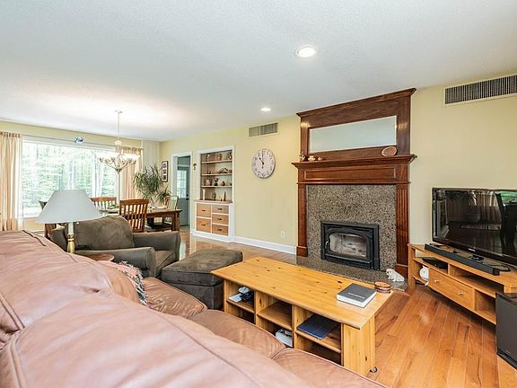 Pride of ownership shines through this impeccably cared for open concept ranch. Boasting a sunny updated kitchen with granite countertops, tiled backsplash, new cabinets, and stainless steel appliances. The large dining area flows into the family room featuring a granite surround fireplace with a custom cherry wood mantle and Vermont Castings insert. The rich hardwood floors and high ceilings in this home add to its warmth, character, and charm. The room with the stone fireplace off the dining room could be utilized as a third bedroom. The stone entry way adds excellent curbside appeal along with the circle driveway and professional landscaping. The back yard which abuts the woods has a brick paver patio and will be your quiet private oasis where you can entertain family and friends or just relax with a coffee enjoying nature. Call for a showing and see what this great home has to offer.