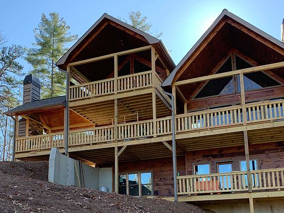 Brand new craftsman style cabin with year round mountain view! There are so many custom touches in this cabin that you need to see in person: Granite kitchen countertops, custom range hood, custom cabinets, accent walls in several rooms, huge porches, outdoor wood burning fireplace, 2 indoor fireplaces, stained concrete floor in basement, bonus bunk room or office in basement. There are TWO Master SUITES both with double vanities, tiled showers, and garden tubs! The list could go on and on!
