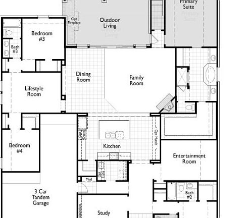 MLS# 513568 - Built by Highland Homes - Ready Now! ~ Popular model home plan! Super stunning 1-story home that has it all! This home offers a grand entrance with double-doors, a study upfront, spacious entertainment room, lifestyle room for a separate hangout space, private guest ensuite upfront & a dreamy entertainment space at the heart of the home. High-end details throughout including farmhouse apron-front kitchen sink, butler's pantry, HUGE island & walk-in pantry. Home offers spacious master bathroom with oversized shower with tile mudpan & gorgeous freestanding tub. High-end finishes throughout including luxury vinyl plank flooring, white cabinets with black accent island with wrap-around cabinet details, quartz countertops & upgraded tiles throughout. Gorgeous exterior with 4-sides brick, full sod irrigation fence & smart home technology package. Absolute must see!