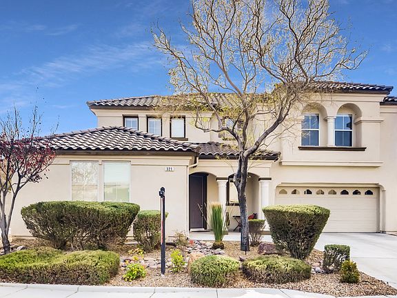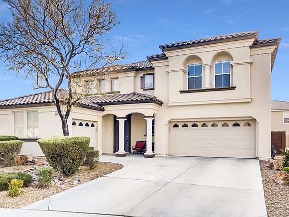 Every REX home comes with a 30-day buyback guarantee. Terms and conditions apply. Fantastic 4 bedroom, 3 bath home with 3050 square feet in North Las Vegas! Move-in ready with great curb appeal and complete with an entertainer's yard including a sparkling pool, spa and desert landscaping. Designer wood ceiling fans adorn in each room and there is a family room on each floor. Smooth surface countertops, gas stove, a center island and large eat-in area adorn the kitchen, which opens to the family room and has sliding glass doors out to the covered deck and pool area. A guest bedroom is situated on the main floor and the remaining bedrooms are upstairs, all generously sized with great closet space. A master en suite bath has a step-in shower, separate tub, double vanity and soft natural lighting. Three car garage. A really special and rare find!