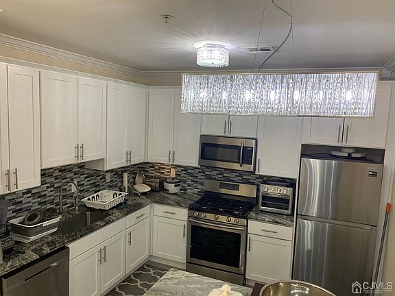 SELLER MOTIVATED! Spacious, one level unit on the 3rd floor. Features 2 bedrooms, 2 full bath w/ a modern kitchen and breakfast bar. Open floor plan w/Living room that opens to a balcony w/a storage room overlooking water fountain. Rooms have crown molding. Master bdrm has tray ceiling design, two walk in closets and bath w/a soaking tub and stall shower.Building has a lounge on each floor, a gym on the second floor, outdoor seating areas, elevators and a beautiful lobby with a gas fireplace. 1 car garage available for sale separately. Safe and secure key less FOB system to enter building. Close to shopping, restaurants, entertainment, and NYC transportation. Seller Motivated!!