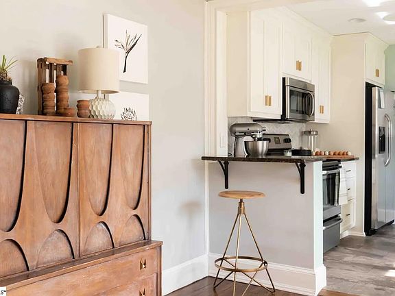 Under $350,000 in downtown Greenville area!? Fantastically remodeled-the small details really shine in this home! When entering the home, get comfortable in the living room which includes a white painted brick fireplace, hardwood floors, and front facing windows-bringing in lots of natural light! To your right, walk through the archways into your dining space and kitchen, featuring all white cabinetry, gorgeous backsplash, and gold accents-this open floor plan is perfect for entertaining your friends or family! Attached walk in laundry and full bathroom. At the back of the home, you will find the 2 bedrooms and another updated full bath. BUT WAIT, also entertain your guests in your spacious backyard including a fire pit-perfect for gathering around & roasting marshmallows this fall and winter, a chicken coop, and a camper (sold separately). This backyard has ENDLESS opportunities!! This home could be used as a rental property or an incredible residence. To top it all off this home is in a PRIME location. Minutes away from downtown Greenville with ample amounts of shopping, restaurants, and parks. This one won't last long, schedule your showing TODAY!!