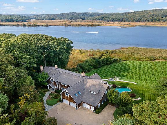 Riverfront Elegance. Custom-designed Nantucket style home set on 3.26 acres of lush landscape, sweeping lawns, stone walls and breathtaking views of the Connecticut River. Equidistantly located between Deep River Center and storied Essex Village, this 7 bedroom/4.2 bath home is a superb example of craftsmanship and design featuring hardwood flooring throughout, deep crown molding, 10-ft ceilings, french doors, 6 fireplaces, a cherry-paneled study, a soaring two-story great room, a formal dining room, media room with granite wet bar(incl. wine refrigerator and ice maker), and a spacious custom granite kitchen with stone floor breakfast room and top-of-the-line stainless steel appliances. On the second level are 5 spacious bedrooms including a sumptuous master suite with fireplace, private balcony, marble bath with radiant heat floor & massive walk-in closet. The finished walk-out lower level includes 2 additional bedrooms (one is currently being used as a fitness studio) with a shared full bath plus separate entry, a wine/storage room, utilities room/workshop, and a large family/games room that serves as the gateway to the stone patio and spa/pool area and the impressive stone wall/steps to the manicured lawns and boat dock below. Truly a beautiful home to suit any lifestyle and satisfy the most discerning taste. **All physical showings of the property will only be granted after buyer provides documented proof of funds and/or a lender certified buyer qualification. All COVID protocol for showings to be followed (wearing of masks, shoe covers, gloves). No exceptions. Only the decision makers may be present at showings. No previews. A virtual tour video available upon request** Note: Square footage for lower level is incorrect in Town Records. The finished lower level living space is approx 2100 square feet.