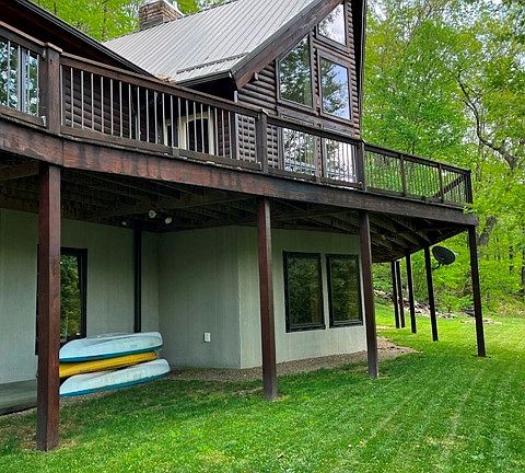 Spectacular Riverfront property in a wonderful location. Presently used seasonally but could be full time. You can walk or bike a little over 2.5 miles up River and enjoy the Small town of Foxburg and all it has to offer. Parker Boat launch is directly across the River. Clarion Boat Launch and State Game Lands also short distance away. Allegheny River sits in front of you and Clarion River just a short distance up stream. Community Sewage. Wrap around deck, Home is White Cedar with Hemlock Beams and Hickory Floors, Amish Alder kitchen cabinets. 2 sheds, One sits behind home and one up over hill behind home. Small Waterfall. Lower level also offer's Rec room with wet bar and wine cellar. Fishing, Boating, Swimming, Biking, Canoeing, Kayaking. Garage is supplemented with Reznor Heat and Family room offers Pellet Stove. This is truly a must see property offering much more!!