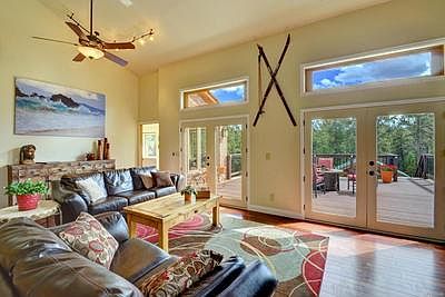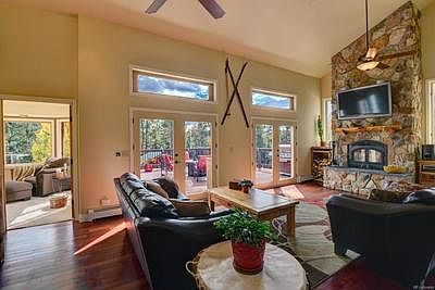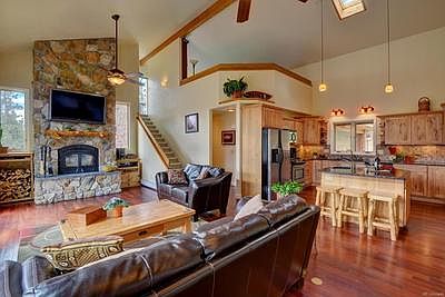 This is why you move to Colorado! Views, privacy and stunning home on almost 10 usable acres! Main level features open floor plan with living room, kitchen, dining room, master suite and laundry. Living room has Brazilian cherry hardwood floors, lots of windows and natural light, and beautiful wood burning fireplace. Enjoy cooking in kitchen with stainless steel appliances, granite counters and hickory cabinets. Master suite is spacious with walk in closet, huge shower, double sinks, granite, and travertine. Main level opens onto huge trex deck and covered hot tub. Upper level is a loft currently being used as an office. Lower level could be a mother in law apartment or a kids oasis. This level features 3 bedrooms, family room, full bath and a kitchen. Home has a spacious 2 car attached garage with workshop, a 3 car detached garage, a storage shed, a wood shed and a covered hot tub. What more could you ask for'