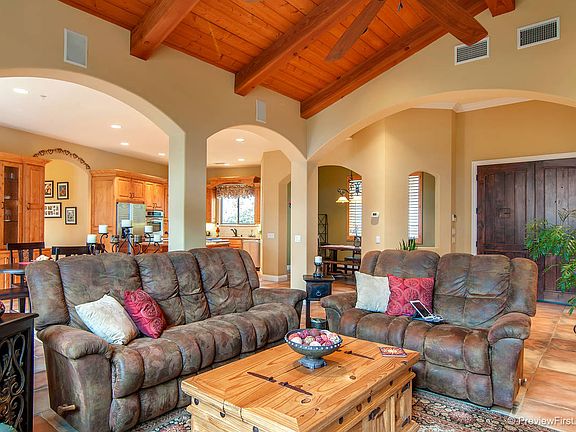 Gorgeous home beautifully maintained and decorated with the best of taste! Located up a private road with great views from several rooms. Mostly one level living except for guest suite below plus bonus room. Gorgeous Old World style throughout. Great room style living and dining rooms that open to a special deluxe kitchen. Master suite is separate from 2 guest bedrooms on main level. Covered balcony to enjoy the views. Bonus room down is not on tax rolls, app. 200 sf.
