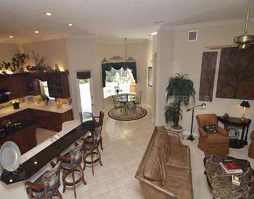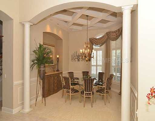 Active with Contract. The finest gated community, with luxury, custom homes. Mediterranean exterior with a versatile interior. Ornate details from arched doorways, crown molding, plantation shutters/blinds to tray beamed ceiling in the dining room, and custom window treatments throughout. Floors are neutral ceramic tile, wooden stairs, and carpet in the bedrooms/bonus. Ideal floor plan with master suite, office & guest bedroom downstairs. Office includes custom built-in shelving with a double door entrance. 12 foot ceilings down and 10 foot ceilings upstairs, with 8 foot doors. Upstairs includes a 3/2 plan: 1 bedroom suite with private bath, 2 bedrooms share a tub/shower/toilet with private vanities, and a bonus/media room. Well equipped kitchen offers Kitchen Aid appliances including double convection ovens and a five burner gas stove. Richly colored 42" custom cabinetry, with wooden panel appliances, is offset by the combination of granite and corian counter tops. Large master suite has tray ceilings and sitting area that opens up to the lanai and screened pool/spa. The master bath (17x13) includes a jetted tub, vanity area, shower with dual heads, and a separate water closet. The large master closet (13x13) will fit all your needs, and more! Propane gas heats up the stove, water heater, fireplace, and outdoor gas grill. The screen enclosure patio and pool/ spa were recently resurfaced. Landscape lighting around the lush landscape. Spacious four car garage and floored attic for ample storage.