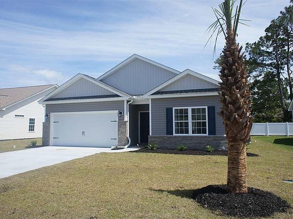 Beautiful Topsail floor plan in the new Ocean Palms community. This terrific open floor plan, 3 bedroom, 2 full bath home has waterproof wood-look flooring in the family room, kitchen and dining area, under the soaring vaulted ceiling, and comfortable carpet in the bedrooms. Stainless appliances, granite counters, white Shaker-style staggered-height stained birch cabinetry and a convenient breakfast bar combine to give you the wow factor you're looking for, and abundant recessed lighting plus two large windows in the adjacent dining area flood the room with light. A French door in the dining room leads to the covered rear porch and the large separate patio beyond. The spacious master retreat features a long vanity, an oversized walk-in shower, plenty of storage in the two huge walk-in closets, plus a tray ceiling. Two additional bedrooms and a full bath are tucked off on their own hallway, for privacy. All of the homes in Ocean Palms come standard with the luxury of natural gas (tankless water heater, gas heat, and gas range). The two car garage is completely trimmed and painted, and a floored attic storage space is accessed by drop-down stairs. Ocean Palms is conveniently located near shopping, restaurants, schools and world class medical offices and hospitals, and only a short golf cart ride to Surfside Beach's gorgeous beach and the beautiful Atlantic Ocean. Other floor plans and inventory homes may be available, and CUSTOMIZATION OF FLOOR PLANS IS POSSIBLE!!! Community Pool and Cabana Coming Soon! Photos are of a completed, similar home and may have different features.