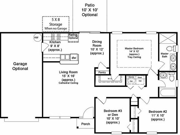 - Included: Dishwasher, Garbage disposal, Microwave, Range / Oven