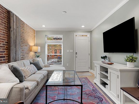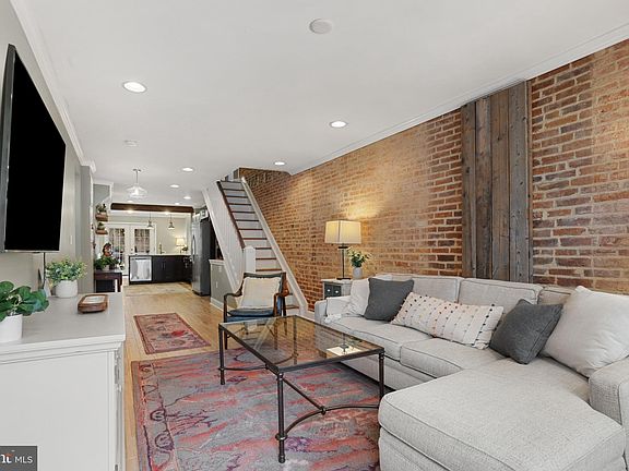 Welcome to 321 S Collington Avenue — where timeless Baltimore character meets thoughtful modern updates! This beautifully maintained home in Upper Fells Point features a light-filled, open floor plan on the main level, complete with hardwood floors, exposed brick, custom reclaimed wood shelving, and recessed lighting throughout. The extra-long layout provides plenty of room for a designated dining area, perfectly positioned beside elegant French doors that open to a serene private brick patio — your own outdoor retreat. The updated kitchen is both stylish and functional, showcasing stainless steel appliances, Corian countertops, and contemporary cabinetry. Upstairs, the spacious primary bedroom includes an en-suite bathroom and is prepped for a future rooftop deck, with an exterior door already in place. A second bedroom and full hall bath with a large linen closet round out the upper level, with continued exposed brick adding character throughout. The unfinished basement offers generous storage space and peace of mind with a professionally installed French drain system. Located just one block from Patterson Park and walking distance to the best of both Fells Point AND Canton — this home offers the perfect blend of city living and modern comfort!