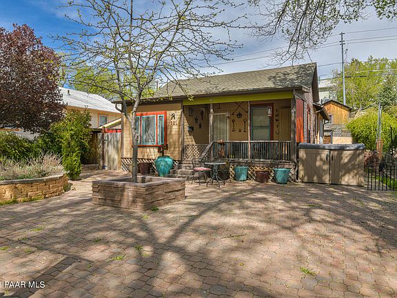 Cozy Cottage! Home listed on the National Historical Registry. One Block to Restaurants, Prescott Courthouse Plaza. Enjoy your morning coffee on the large front porch. one level living. Home Feels Bigger then sqft with indoor/outdoor living space. Hard Wood Floors. Realistic Era 3 Bedroom with some original Atinque Pulley Rope Windows. Stainless Steel Appliances. Newer HVAC and hot water heater. Fenced yard, alley access and storage bldg in rear. No HOA. Property is completey fenced. Zoned Business General. Active AIRBNB - Investor opportunity. Can be used as an Office or Live in it. Home NOT subjuet to NHR restrictions. Street curb can be cut for an easy access driveway parking w/ hook ups. Check w/city. Some Furniture negotiable. Make appointment to see.